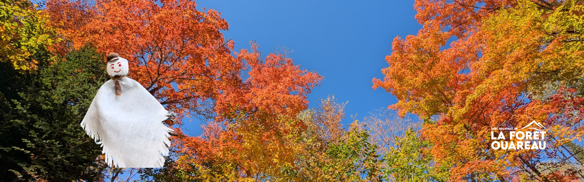 Des fantômes se sont évadés dans la Forêt Ouareau ! 👻 Participez au Cherche et trouve et partez à leur recherche au cœur des couleurs flamboyantes de l’automne — courez la chance de gagner une passe familiale pour le Parc régional de la Forêt Ouareau !